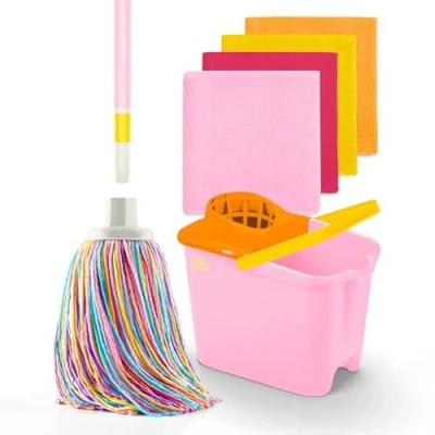 PACK INCLUDES: 100% recycled microfibre mop with universal thread, bucket with wringer and capacity of 14 litres, and pack of 4 100% recycled microfiber cloths in 4 different colors, super absorbent. Everything you need for sustainable home cleaning. ERGONOMIC HANDLE CUBE: Its ergonomic design allows for comfortable and safe transport, even when full. TRACELESS CLEANING: Advanced microfiber technology ensures streak and residue free cleaning, leaving all your surfaces spotless and shiny. Suitable for all surfaces. HEAVY DUTY AND ROBUST: Set designed to withstand heavy use, offering exceptional durability and maintaining performance. An economical and sustainable cleaning solution. DIVINE GENIUS: We are an innovative company committed to the environment that has developed and designed products with 100% recycled materials, giving them exceptional quality to make cleaning a more sustainable environment.