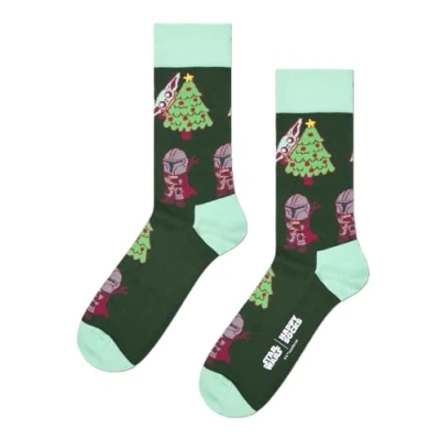 Happy Socks Star Wars The Mandalorian Xmas Tree Sock, Dark Green, 36 40