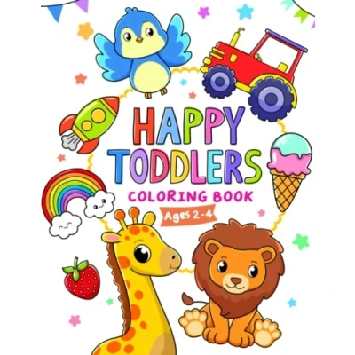 Happy Toddler: Cute, Easy and Fun Things & Animals Coloring Book For Kids Ages 2 4, Preschool Kindergarten