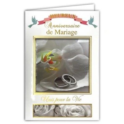 Happy Wedding Anniversary Card United for Life in Golden Gold Congratulations Couple Rings Love Lovers Romantic Flower White Orchid 55th Birthday Envelope 12 x 17.5 cm 63 1027 B