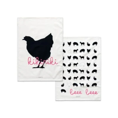 HappyFriday White Kikiriki Tea Towel 70 x 50 cm (Pack of 2)