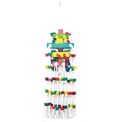 Encourages Natural Behaviours: Designed to stimulate parrots and larger birds, promoting instinctive chewing and foraging to support mental and physical enrichment. Prevents Feather Plucking: Engaging textures and colours help deter destructive behaviours, keeping birds entertained and reducing stress. Made from Natural Materials: Crafted from 100% natural wood and cotton rope, ensuring a safe and durable playtime experience. Non-toxic colours and dyes for pet-friendly fun. Easy to Attach: Secure metal clasp allows quick and hassle-free installation in any bird cage, keeping the toy stable for interactive play. Generous Size for Larger Birds: Perfectly sized for parrots and other large birds, offering a robust and engaging toy to satisfy their chewing instincts.