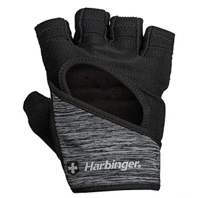 Harbinger FlexFit Women's Weight Lifting Gloves, Wash and Dry Leather, Vented StretchBack Mesh Gym Black/Heather Grey, L