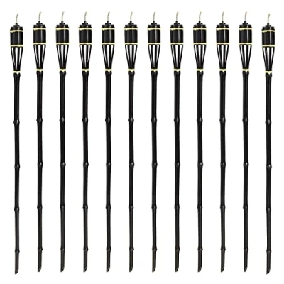 Harbour Housewares 12x Black 113cm Bamboo Garden Fire Torches Outdoor Paraffin Lamp Oil Burner Tiki Candle Flame Lantern Stake Light