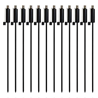 Harbour Housewares 12x Black 146cm Garden Fire Tiki Torch Cylinder Oil Paraffin Outdoor Candle Flames Lantern Light
