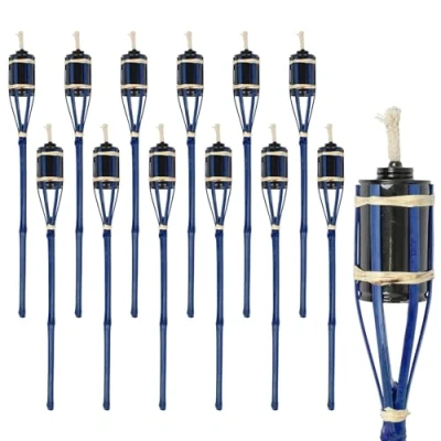Harbour Housewares 12x Blue 60cm Bamboo Garden Fire Torches Outdoor Paraffin Lamp Oil Burner Tiki Candle Flame Lantern Stake Light
