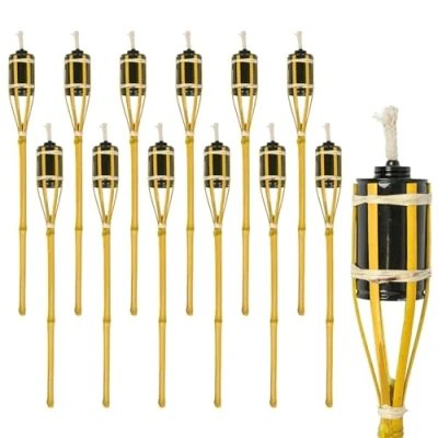🔥 Tropical Bamboo Garden Torches – Bring warm, atmospheric lighting to gardens, patios and terraces with bamboo tiki torches that create a relaxed, inviting outdoor ambience for evenings and entertaining 🌴 Traditional Tiki Design with Modern Detail – Crafted from natural bamboo and paired with a sleek metal fuel chamber, combining Polynesian-inspired style with practical, contemporary garden lighting 🌿 Easy Ground Installation & Flexible Placement – Angled base allows simple staking into soil, ideal for illuminating pathways, borders and outdoor spaces; each torch measures 60cm in height 🛢️ Refillable Metal Oil Chamber – Removable screw-top fuel container makes refilling quick and mess-free, delivering a consistent, vibrant flame to enhance outdoor atmosphere ☀️ Durable Outdoor Construction – High-quality bamboo body and robust metal oil chamber are designed to withstand outdoor conditions, providing reliable and long-lasting decorative garden lighting