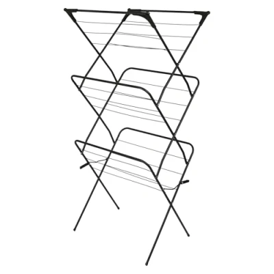 Harbour Housewares 3 Tier Foldable Clothes Airer Black 1x Indoor Outdoor Home Kitchen Balcony Compact Portable Folding Collapsible Laundry Clothing Washing Drying Dryer Hanger Rack
