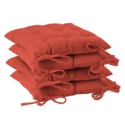 Harbour Housewares 4x Paprika 40cm x Square Seat Pad With Ties Cotton Lined Outdoor Indoor Padded Chair Garden Dining Set