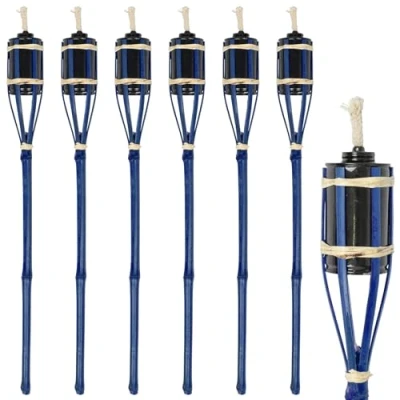 Harbour Housewares 6X Blue 60cm Bamboo Garden Fire Torches Outdoor Paraffin Lamp Oil Burner Tiki Candle Flame Lantern Stake Light
