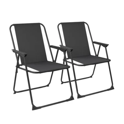 Harbour Housewares Folding Beach Deck Chair Black Pack of 2 Metal Outdoor Patio Seat for Picnic, Garden, Camping