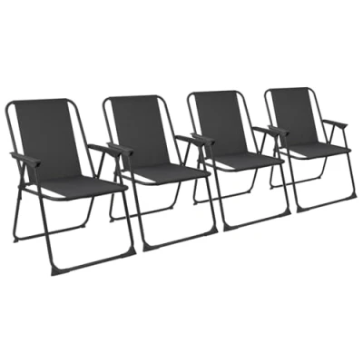 Harbour Housewares Folding Beach Deck Chair Black Pack of 4 Metal Outdoor Patio Seat for Picnic, Garden, Camping