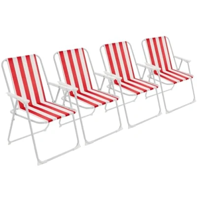 Harbour Housewares Folding Beach Deck Chair Red Stripe Pack of 4 Metal Outdoor Patio Seat for Picnic, Garden, Camping
