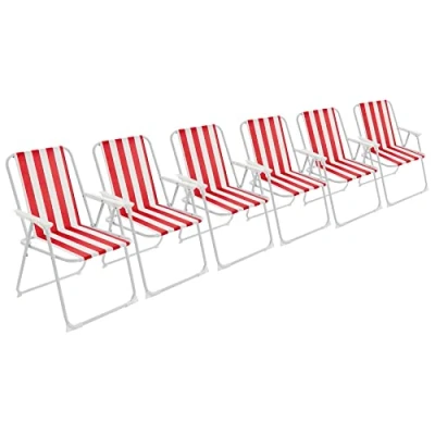 Harbour Housewares Folding Beach Deck Chair Red Stripe Pack of 6 Metal Outdoor Patio Seat for Picnic, Garden, Camping