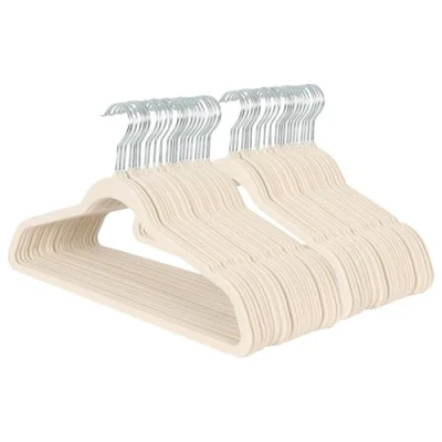 Harbour Housewares Velvet Hangers 45cm 50x Ivory Coat with Trouser Bar Clothes Hanger 360 Degree Swivel Hook Wardrobe Organiser for Suit & Shirt Coathangers,