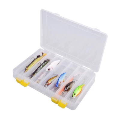 AmazonPlastic box designed for storing Hardbaits Includes compartments on both sides and individual ones ideal for Hardbaits to not get rubbed 14 separate compartments Measurements: 270 x 175 x 45 mm.