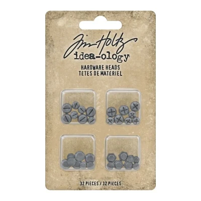 Add an industrial touch to your projects with the Tim Holtz Idea-ology Hardware Heads. This set includes 32 small, flat-backed metal adornments that mimic hardware elements. The hardware heads vary in size from 1/4" to 3/8" in diameter and feature four different designs, each in two sizes. They come in an antique nickel finish, adding a vintage flair to your crafts. Perfect for scrapbooking, card making, and mixed media art, these hardware heads can be used as embellishments, focal points, or interactive elements in your projects.. simonsaysstamp.com. Features & Benefits:. 32 pieces per set – includes four different designs, each in two sizes. Size range – hardware heads vary from 1/4" to 3/8" in diameter. Antique nickel finish – adds a vintage touch to your projects. Flat-backed design – easy to adhere to various surfaces. Perfect for mixed media – ideal for scrapbooking, card making, and DIY décor. Perfect for:. Enhancing scrapbooks and cards with an industrial flair. Decorating journals and planners with hardware-inspired accents. Creating custom embellishments for mixed media art projects