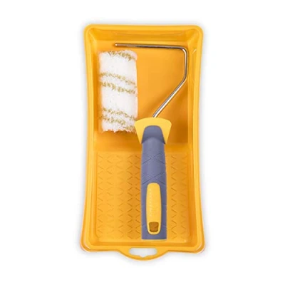 HARDY WORKING TOOLS A0180 56000 Paint Roller Set, Tray and Rollers Made of Polyester, Pile Height 12 mm, Length 10 cm, Diameter 30 White/Yellow/Grey