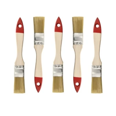 Versatile: synthetic bristles for solvent-based paints, alkyd and oil paints; paints wood, concrete, metal, tiles, PVC clean and streak-free; brush for painting, varnishing and glazing - ideal as a painting brush, varnish brush, glaze brush 5 x flat brush set 1 inch: approx. 25 mm bristle width, series 30 - synthetic light bristles, natural wood handle and steel ferrule; brush for wood stain, varnish, wall paint; perfect painting brush set for DIY and professionals PRECISE BRISTLE: 25 x 38 x 9 mm - Bright synthetic fibres distribute colour evenly, deliver perfect edges & long service life; Paint Brush/Paint Brush, Wood Exterior Glaze Brush & Brush for Wood Oil Robust steel tongs: steel fixes bristles firmly, prevents hair loss and ensures dimensionally stable, clean stroke even with solvent paints; professional quality for painting supplies and paint brush set Ergonomic natural wood handle: smooth, sits securely in the hand, reduces fatigue; hanging opening for quick drying and transport; ideal brush for wood paint, wood stain, varnish inside and outside, Manufacturer: KAEM Sp. z o.o. Sp. K.