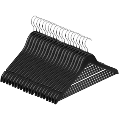 Hardys Black Wooden Coat Hangers Sloped with Notches, Trouser Bar & 360 Rotating Hook Wardrobe Space Savers, For Clothes Coat, Jacket, Suit, T Shirt (20 Pack)