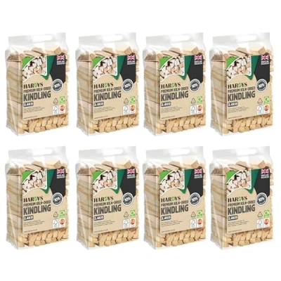 𝐏𝐑𝐄𝐌𝐈𝐔𝐌 𝐐𝐔𝐀𝐋𝐈𝐓𝐘 𝐊𝐈𝐋𝐍 𝐃𝐑𝐈𝐄𝐃 𝐋𝐎𝐆𝐒 - Each of the kindling bags contains 2.4KG apiece of UK sourced wood. Every fire log is expertly kiln dried to 10% moisture (or below!) for easy lighting and a cleaner, consistent burn. 𝐂𝐎𝐍𝐕𝐄𝐍𝐈𝐄𝐍𝐓 𝐋𝐈𝐆𝐇𝐓𝐈𝐍𝐆, 𝐀𝐍𝐘𝐖𝐇𝐄𝐑𝐄 - Every 2.4KG bag contains perfect kindling wood for wood burner, fire pit, pizza ovens or chimineas. Instantly light your fire with all-natural, dust-free kindling that is responsibly sourced and free from chemicals. 𝐇𝐎𝐔𝐑𝐒 𝐎𝐅 𝐖𝐀𝐑𝐌𝐓𝐇 - Meticulously dried for a remarkable burn, each fire log delivers exceptional heat output, and hours of long-lasting use: Create the perfect cosy fireside ambiance, or fire up the pizza oven on a nice evening. 𝐂𝐎𝐍𝐕𝐄𝐍𝐈𝐄𝐍𝐓 𝐏𝐀𝐂𝐊𝐀𝐆𝐈𝐍𝐆 - These 2.4kg individual bags of firewood kindling are easy to handle and store. The recyclable packaging ensures convenience and sustainability. Each bag contains carefully selected wood for less dust (less mess), and a longer, cleaner burn. 𝐖𝐎𝐎𝐃𝐒𝐔𝐑𝐄 '𝐑𝐄𝐀𝐃𝐘 𝐓𝐎 𝐁𝐔𝐑𝐍' 𝐂𝐄𝐑𝐓𝐈𝐅𝐈𝐄𝐃 - Our kiln dried wood guarantees maximum efficiency, minimal smoke and ash, for clean-burning compliance. Perfect for use as fire wood for fire pit, our logs for open fire are 100% natural and additive-free.