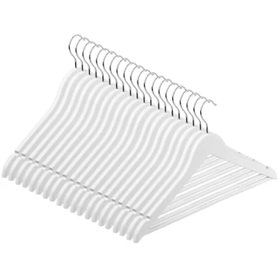 Hardys White Wooden Coat Hangers Sloped with Notches, Trouser Bar & 360 Rotating Hook Wardrobe Space Savers, For Clothes Coat, Jacket, Suit, T Shirt (20 Pack)