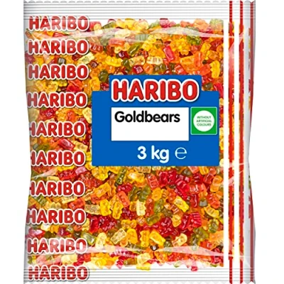 The original fruit flavoured gummy bears 5 fruit flavours: lemon, orange, pineapple, raspberry, strawberry 1 x 3kg bulk sweets bag Free from artificial colours Kids and Grown ups love it so, the Happy world of HARIBO Perfect for sharing