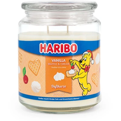 Haribo Scented Candle in Glass with Lid Vanilla Waffle Cream Candles Long Burning Time (100 h) Gifts for Women Large (510 g)