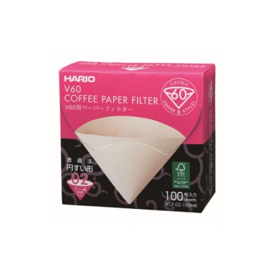 Paper filters Hario "V60 02 MK" - it is brown (unbleached) paper filters, made for ceramic and plastic filter coffee makers Hario "V60". One package contains 100 cone-shaped paper filters that will keep away undesired coffee particles and guarantee a rich coffee flavour.
