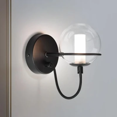 HARPER Living 1xG9 Up Wall Light with On/Off Switch, Indoor Lamps Matt Black Finish, Modern Sconce Lights Globe Glass Shade, Ideal for Bedroom, Room, Hallway, Hotel
