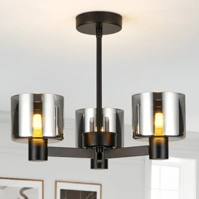 SLEEK & CONTEMPORARY DESIGN: Featuring a contemporary luxe design, this chandelier is made of high-quality metal materials, stunning matt black finish, and a sturdy and durable base. With 3 artistic smoke-gray glass lampshades, it creates a unique lighting atmosphere for the whole room. CHANDELIER SPECIFICATIONS: Measuring 40cm x 40cm x 35cm, semi flush ceiling light operates on a 220-240V voltage and accommodates G9 bulbs with a maximum power of 3x5W. This light is dimmable compatible and is perfect for use with G9 LED lamps. (Note: Bulbs and dimmers are not included.) VERSATILE APPLICATION: This exquisite foyer pendant ceiling light is perfect for a variety of settings, including dining rooms, breakfast nooks, kitchens, islands, bars, living rooms, bathrooms, bedrooms, balconies, porches, corridors, attics, staircases, craft rooms, entrances, offices. Its modern stylish style infuses your space with unique charm and elegance. HASSLE-FREE INSTALLATION: Our corridor ceiling light comes complete with all necessary accessories and comprehensive instructions, making installation a breeze. You'll have your new lighting solution up and running in just minutes! Should you encounter any questions during setup, don’t hesitate to reach out to us. OUTSTANDING AFTER-SALES SUPPORT: Please understand that transportation can occasionally lead to unintended damage. If your chandelier arrives with any defects or fails to function as expected, please contact our customer service team. We are committed to providing you with the best resolution within 24 hours.
