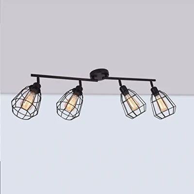 4 Lights Black Vintage Finish, Wire Caged Shades, Dimmable (requires Dimmable Bulbs) Dimensions: Length 89cm, Width 14.5cm, Height 30cm Ideal for Living Room, Bedroom, Kitchen, Office, Corridor, Hotel, B&B Packaging Includes: 1xCeiling Light, 4xShades, 2xScrews, 2xRawl Plugs, Installation Guide