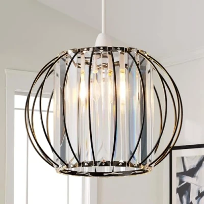 CRYSTAL LIGHT DESIGN: The sleek glass design evenly diffuses light, creating a stunning crystal effect. Enjoy dazzling prismatic reflections on your ceiling, adding a touch of luxury to modern kitchens, living rooms, and hallways. LAMP SHADE SPECIFICATIONS: This 27cm shade compatible with standard E27 and B22 ceiling chandelier fittings (bulb not included). It includes a reducer ring for compatibility with most UK chandeliers. Pair with a dimmable LED bulb for customizable lighting! EASY INSTALLATION: No electrician needed! Great for tenants, this ceiling shade installs in seconds without tools. Simply clip it onto existing bulb holders. It's a damage-free solution for temporary homes or student housing. ANTI-SCRATCH SURFACE: Crafted from tempered glass and metal with a matt black finish, this pendant shade resists fingerprints and rust. It maintains its chic look even in high-humidity areas like UK bathrooms and kitchens. AFTER-SALES SUPPORT: We promise to provide excellent after-sales service, if this glass lampshade you purchased is damaged or has other problems, you can contact us and we will provide you with a satisfactory experience., Weight: 3.8801358112 pounds, Manufacturer: HARPER LIVING