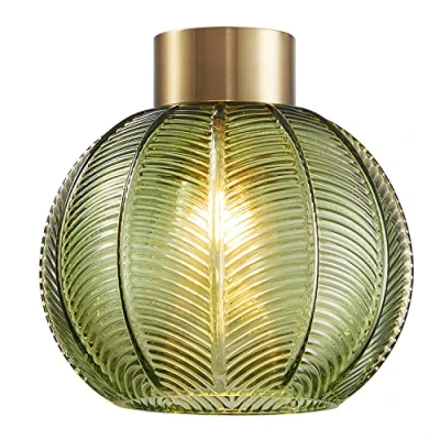 HARPER LIVING Green Glass Lampshade, Pendant Lighting Easy Fit Shade, Elegant Ceiling Light Shade with Antique Gold Top, Lovely 21cm Diameter (Green)