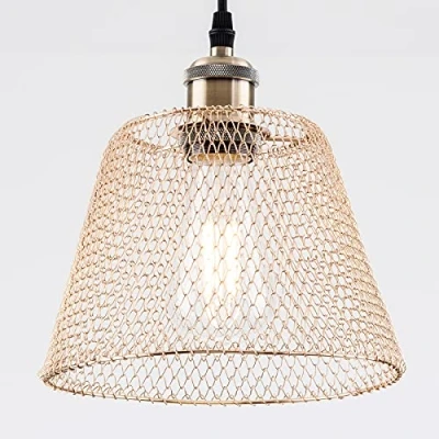 HARPER LIVING Penadant Ceiling Light Shade, Easy Fit Compact Vintage Lamp Shades, Gold Wire Mesh Basket, Metal Lampshades for Bedroom Pendant (Gold)