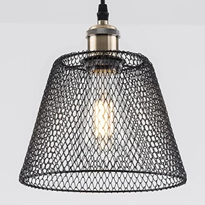 HARPER LIVING Penadant Ceiling Light Shade, Easy Fit Lampshades Black Metal Mesh, Lamp Shades, Reducing Ring Included, Vintage Basket Cage for Bedroom Lights Pendant (Black)
