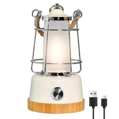 HARPER Living Rechargeable Camping LED Retro Water Resistant Lantern, 6 Watts 370 Lumen 5000mAh Power Bank, Dimmable and Colour Changing, for Room, Garden, Camping, Fishing, Hiking, cuts