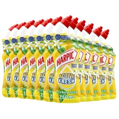 Harpic Active Fresh Toilet Cleaning Gel, Citrus Zest , Pack 12 x 750 ml, Infused with Essential Oils, Kills 99.9% of Bacteria, Cleaner