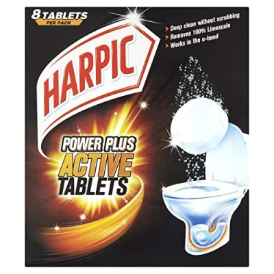 Harpic Powerplus Active Tablets, Original Scent, Pack 1 x 8 Deep Clean Without Scrubbing, Removes 100% Limescale, Toilet Cleaner