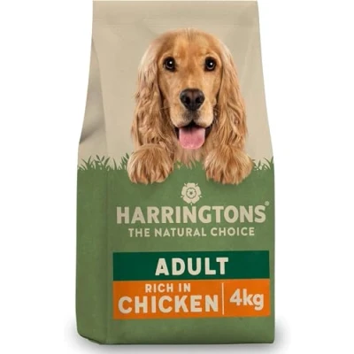1. THE NATURAL CHOICE - At Harringtons, we believe every dog deserves natural food that's balanced, wholesome and tasty. From puppies to seniors to special diets, we make a range that's perfect for you 2. RICH IN CHICKEN - Harringtons Chicken & Veg Dry Dog Food 4kg is a complete adult dog food that has been carefully formulated using all natural ingredients to provide wholesome nutrition for your dog 3. NO NASTIES - The #1 ingredient in our dry dog food is meat, for a nutritionally balanced meal. And we never use artificial colour and flavours or added wheat 4. CARBON-NEGATIVE - We're proud to be the UK's first carbon-negative pet food company. We generate our own electricity, and source locally 5. MADE IN THE UK – Harringtons dog food is proudly made by ourselves right here in the UK and has been family run since 1923