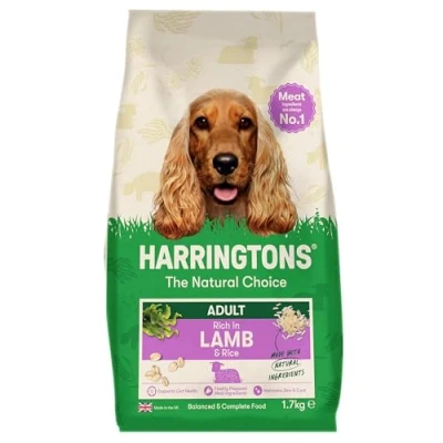 1. THE NATURAL CHOICE - At Harringtons, we believe every dog deserves natural food that's balanced, wholesome and tasty. From puppies to seniors to special diets, we make a range that's perfect for you 2. RICH IN LAMB - Harringtons Lamb & Rice Dry Dog Food 1.7kg is a complete adult dog food that has been carefully formulated using all natural ingredients to provide wholesome nutrition for your dog 3. NO NASTIES - The #1 ingredient in our dry dog food is meat, for a nutritionally balanced meal. And we never use artificial colour and flavours or added wheat 4. CARBON-NEGATIVE - We're proud to be the UK's first carbon-negative pet food company. We generate our own electricity, and source locally 5. MADE IN THE UK – Harringtons dog food is proudly made by ourselves right here in the UK and has been family run since 1923