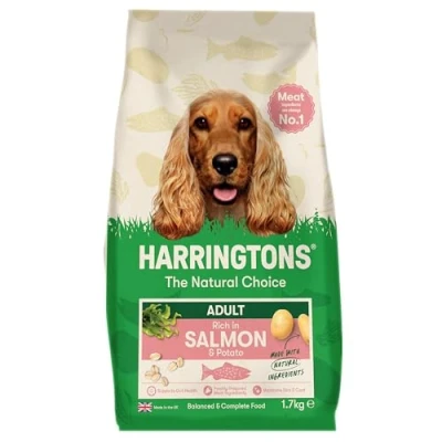 1. THE NATURAL CHOICE - At Harringtons, we believe every dog deserves natural food that's balanced, wholesome and tasty. From puppies to seniors to special diets, we make a range that's perfect for you 2. RICH IN SALMON - Harringtons Salmon & Potato Dry Dog Food 1.7kg is a complete adult dog food that has been carefully formulated using all natural ingredients to provide wholesome nutrition for your dog 3. NO NASTIES - The #1 ingredient in our dry dog food is meat, for a nutritionally balanced meal. And we never use artificial colour and flavours or added wheat 4. CARBON-NEGATIVE - We're proud to be the UK's first carbon-negative pet food company. We generate our own electricity, and source locally 5. MADE IN THE UK – Harringtons dog food is proudly made by ourselves right here in the UK and has been family run since 1923