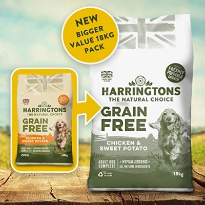 1. THE NATURAL CHOICE - At Harringtons, we believe every dog deserves natural food that's balanced, wholesome and tasty. From puppies to seniors to special diets, we make a range that's perfect for you. 2. GRAIN FREE - Our grain free dog food is hypoallergenic & balanced, to meet the needs of dogs with sensitive stomachs, with no artificial colours or flavours, & no added wheat. 3. FRESHLY PREPARED MEAT - Our complete grain free food contains freshly prepared Chicken, a great source of protein for energy, growth and repair. 4. CARING FOR THE ENVIRONMENT - As part of our efforts to keep packaging to a minimum and help send less packaging waste to landfill, this pack is 100% polyethylene and can be recycled. 5. MADE IN THE UK – Harringtons dog food is proudly made by ourselves right here in the UK and has been family run since 1923.