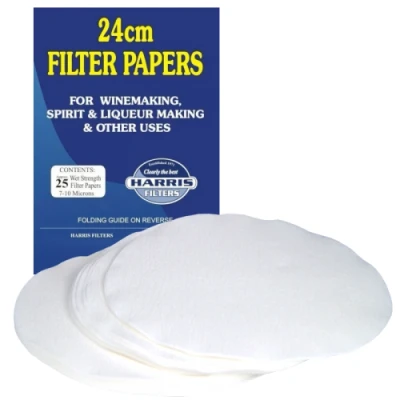 Pack of 25. These 24cm Diameter Filter Papers Are Large Enough To Be Folded Into A Cone Shape, So That They Fit Nicely Into A Funnel. Tony's TipsI wish I'd known about these large size 24cm diameter Filter Papers before I invested in a comparatively expensive Homebrewer's Filtration kit that I only use occasionally for filtering wine but regularly for filtering freshly made ground Coffee to getting the "Bits" out of freshly squeezed lemon or orange juice. These 24cm Vinpapers are also really convenient for larger quantities of Liquid that require filtration. Just place the filter in a Medium to Large Funnel and Hey Presto! . . . . filter anything, anytime, anywhere . . . . at low cost! also available in smaller 15cm diameter size for use with a funnel or the Vinbrite wine filter Kit.