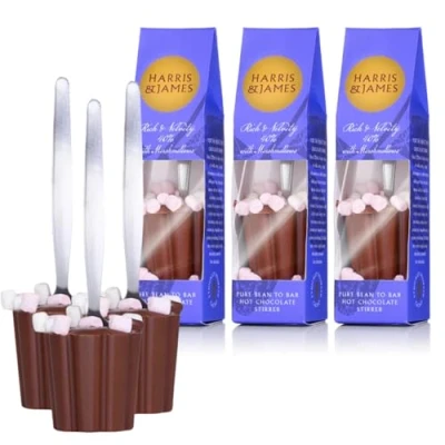 Harris & James Milk Chocolate with Marshmallows Hot Stirrers Pack of 3. Spoon Set Multipack. Gift for Drinking Chocolate. Cocoa Set.