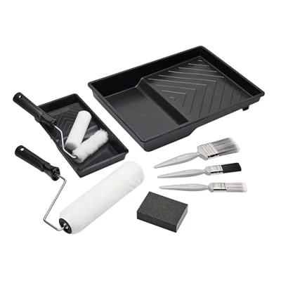 The Essentials decorating set includes the all the tools you need for those interior walls and ceilings and interior woodwork decoating projects A handy sanding block for preparing your surfaces. A 9 inch roller set for painting large areas such as interior walls and ceilings with Emulsion paint A 4 inch mini roller set with an emulsion sleeve and a gloss sleeve means you can paint smaller areas of walls and ceilings and woodwork. 3 x paint brushes for the detail and cutting in., Manufacturer: Harris