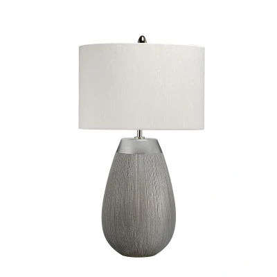 Fine textured details and a crisp silver finish give the Harrow a contemporary update on the classic ceramic table-lamp.