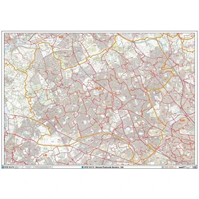 A High Quality Postcode Sector Wall Map. Showing the Entire HA Postcode Area, with Precise Boundaries and Clear Postcode Labels on a Detailed Map Background. A0 Size - 1189mm x 841mm Plastic Coated waterproof / wipeable