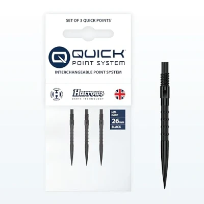 Developed in collaboration with “Heavy Metal” Ryan Searle, these HM Grip Quick Points are engineered to deliver the same control, feel and confidence he relies on with every throw at the highest level. Featuring square-cut rings along the top of the point, the design creates a natural, comfortable finger rest. This improves grip, control and consistency, helping players replicate a repeatable release on the oche. Built for use with the Harrows Quick Point system, these points can be swapped in seconds using the simple included tool. Easily change between lengths or styles with no fuss and no downtime before matches or practice. Crafted for precision, strength and durability, HM Grip Quick Points use a no-break design that integrates seamlessly with compatible screw-point barrels, providing reliable performance under pressure. Harrows Darts: Over 50 years of darts manufacturing, join the the world’s most widely distributed darts brand and start your journey to playing like Harrows Pro Players.