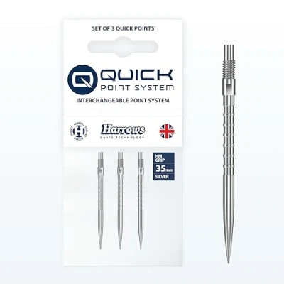 Developed in collaboration with “Heavy Metal” Ryan Searle, these HM Grip Quick Points are engineered to deliver the same control, feel and confidence he relies on with every throw at the highest level. Featuring square-cut rings along the top of the point, the design creates a natural, comfortable finger rest. This improves grip, control and consistency, helping players replicate a repeatable release on the oche. Built for use with the Harrows Quick Point system, these points can be swapped in seconds using the simple included tool. Easily change between lengths or styles with no fuss and no downtime before matches or practice. Crafted for precision, strength and durability, HM Grip Quick Points use a no-break design that integrates seamlessly with compatible screw-point barrels, providing reliable performance under pressure. Harrows Darts: Over 50 years of darts manufacturing, join the the world’s most widely distributed darts brand and start your journey to playing like Harrows Pro Players.